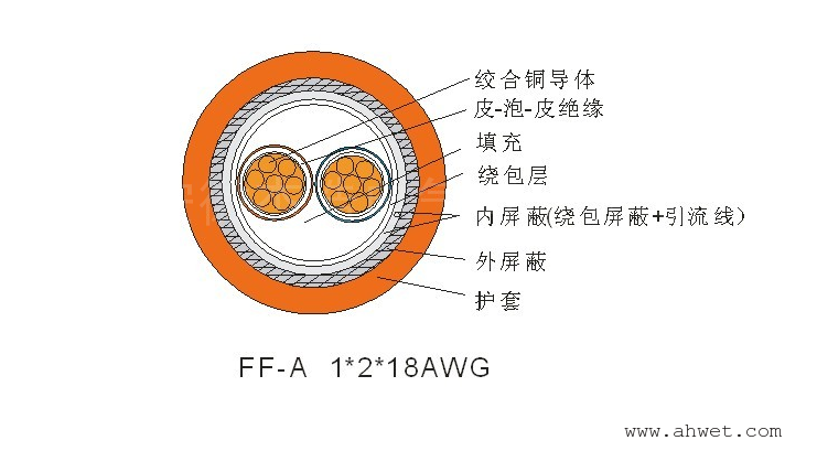 ZR-FF-A 1×2×18AWG阻燃现场总线电缆皖杰